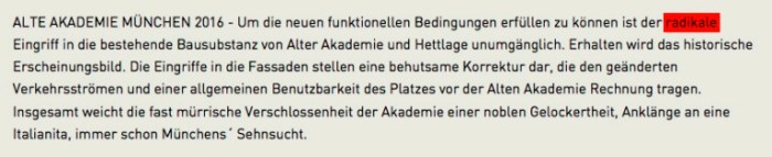 Die „behutsamen und stimmigen Umbaupläne“, soll heißen: die Entkernung der Alten Akademie