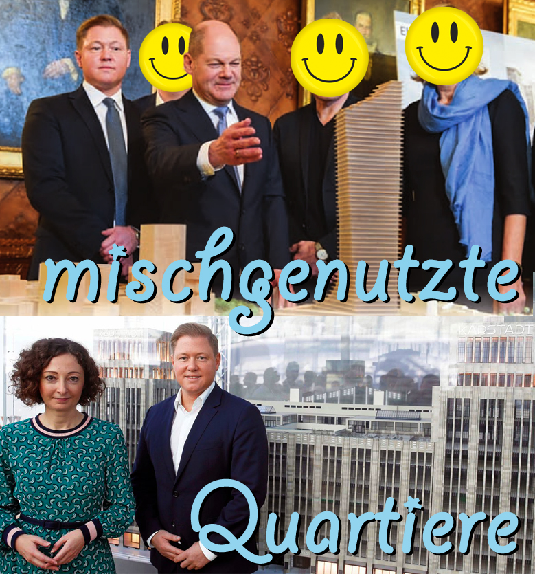 Timo Herzberg sagt die Unwahrheit – und er tut das unbesorgt, weil das in seiner Position ein Leistungskriterium ist und wahrscheinlich ist er darin ja nicht mal schlecht. In Berlin und Hamburg hat er für SIGNA aus den Händen von SPD und Grünen in weiten Bereichen die Stadtplanung übernommen. Dazu gäbe es viel zu sagen, wir wollen hier seine Behauptung für München gerade rücken (als Wiederholung dessen, was in diesem Blog seit über vier Jahren dokumentiert ist).