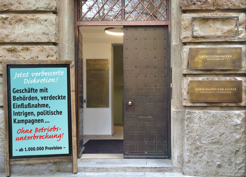 Die Kanzlei der beiden Volksvertreter am Münchner Lenbachplatz (das Werbeschild wurde hinzugefügt).